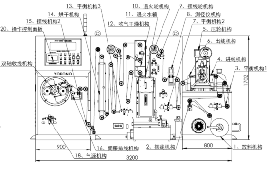2.5、双轴收线机构采用PID速度控制系统加排线伺服高速跟随系统相结合的方式实现扁线排线整齐平稳。