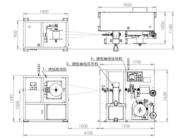2.1、退扭放线机构:采用恒张力被动式退扭放料方式与后端四方压延机的速度实现同步控制,恒张力可调节,具备断线报警及自动停机功能。